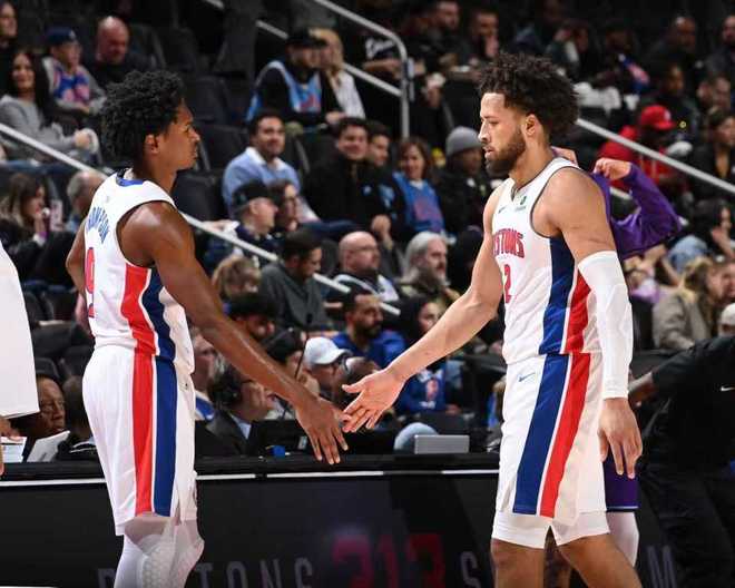 活塞:杜伦22分22篮板3助攻,坎宁安3记三分31分10助攻(末节19分),奥萨尔18分7篮板,勒维尔10分,斯图尔特10分。