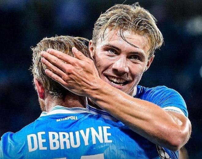 下半场,葡体扳平了比分。第79分钟,德布劳内再次挺身而出。那不勒斯左路连续进攻,球权最后回到德布劳内脚下。比利时人抬头观察了一下禁区中路的形势,随后右脚送出绝妙的弧线球,助攻霍依伦头球绝杀!